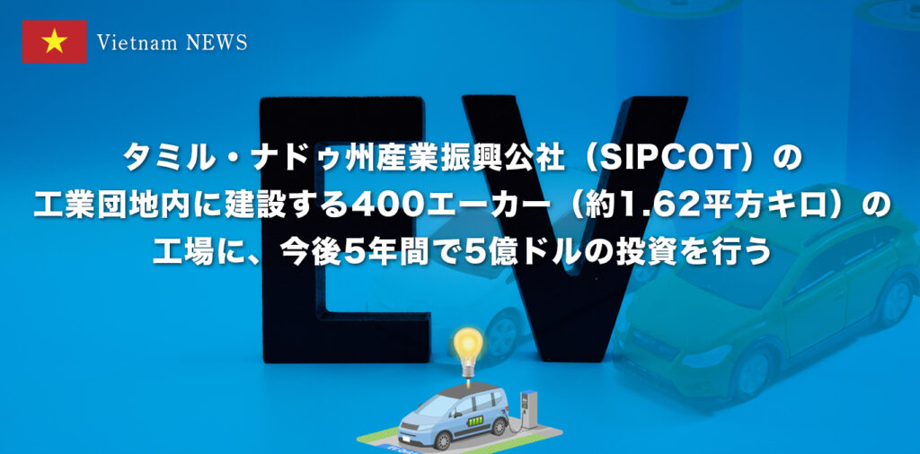 ・タミル・ナドゥ州産業振興公社(SIPCOT)の工業団地内に建設する400エーカー(約1.62平方キロ)の工場に、今後5年間で5億ドルの投資を行う