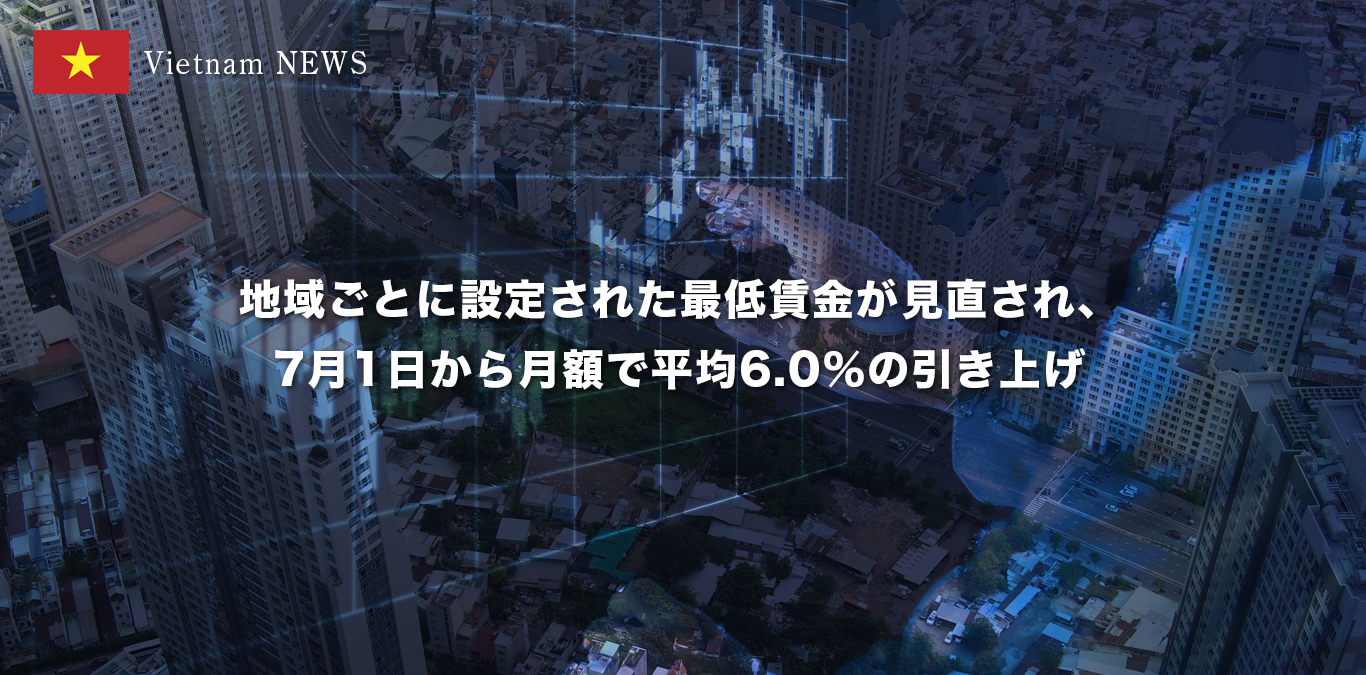 ベトナム、7月1日から最低賃金を月額で平均6.0%の引き上げ