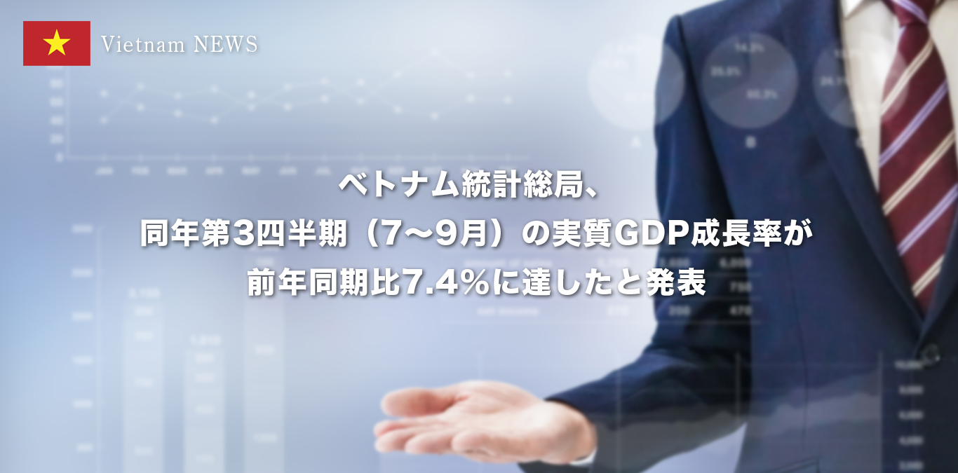 ベトナム統計総局、同年第3四半期(7~9月)の実質GDP成長率が前年同期比7.4%に達したと発表